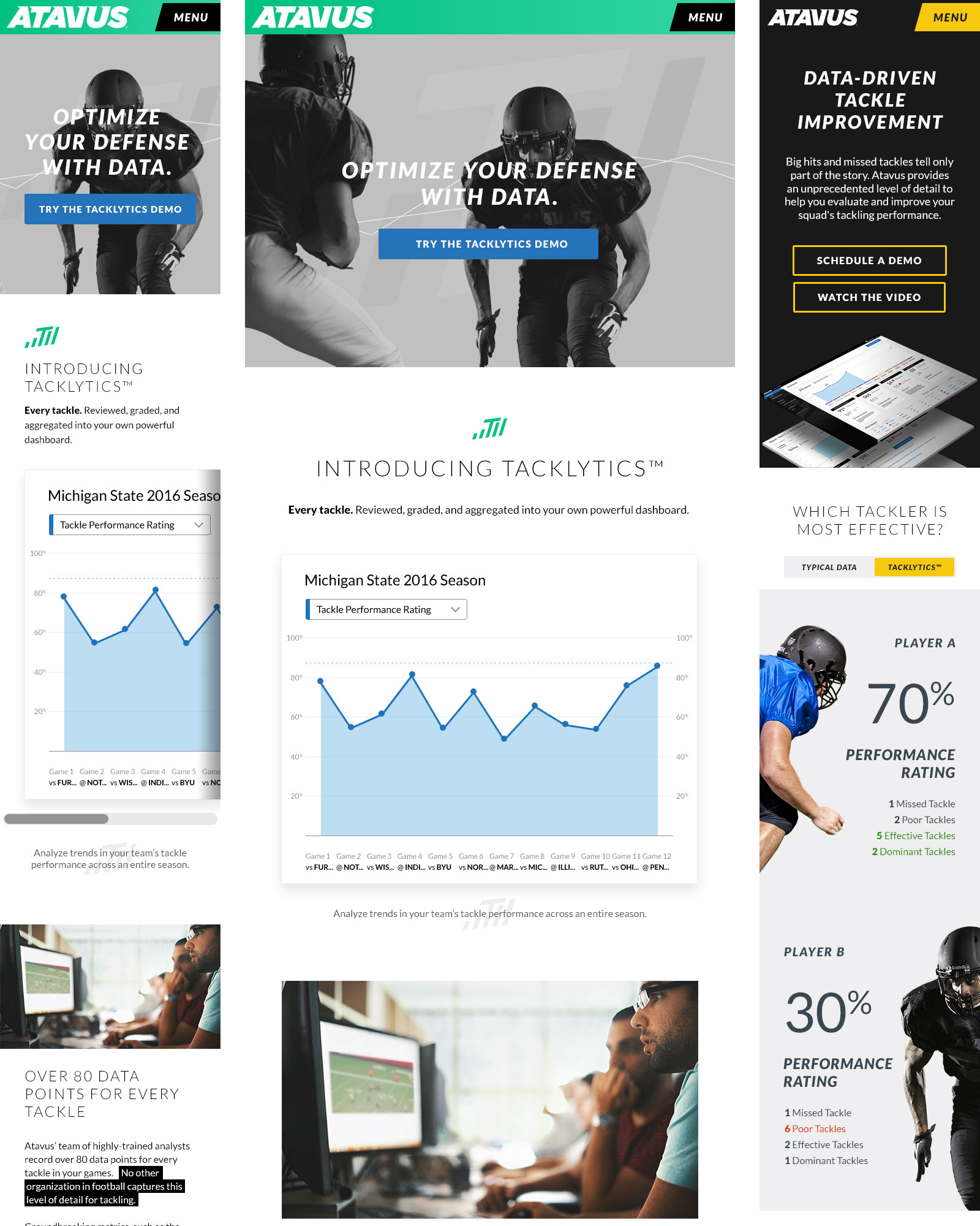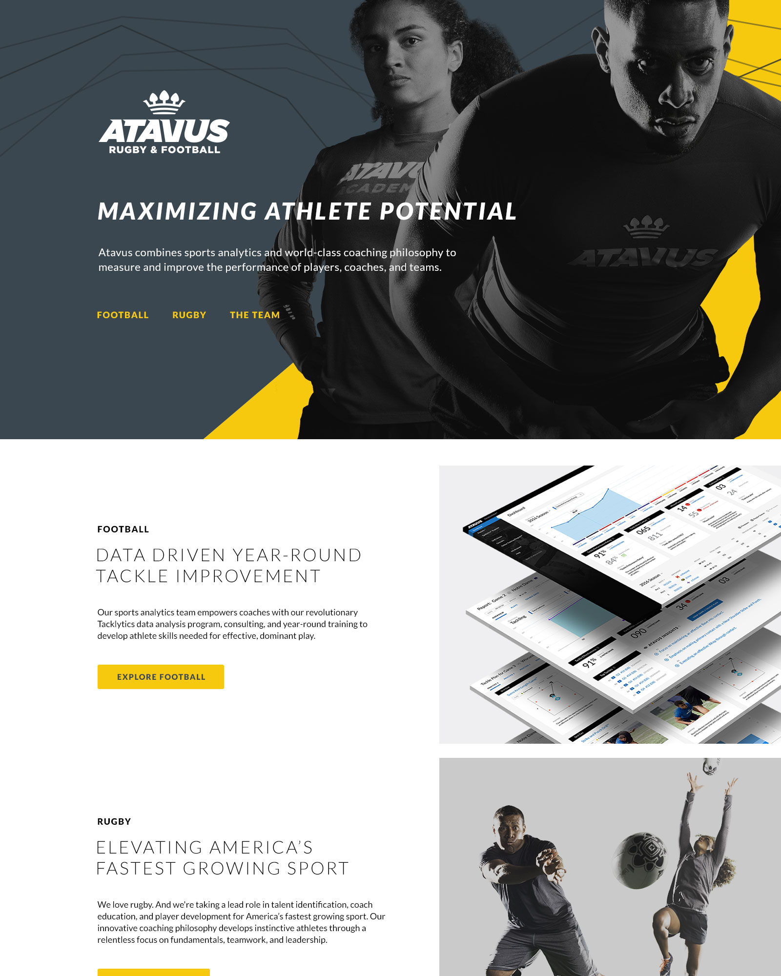 Atavus trains professional and collegiate football and rugby players through data-based programs. Working with several departments on the Atavus team, I created a branding scheme, direction for professional photo shoots, print promotional materials, and a wide range of web designs.