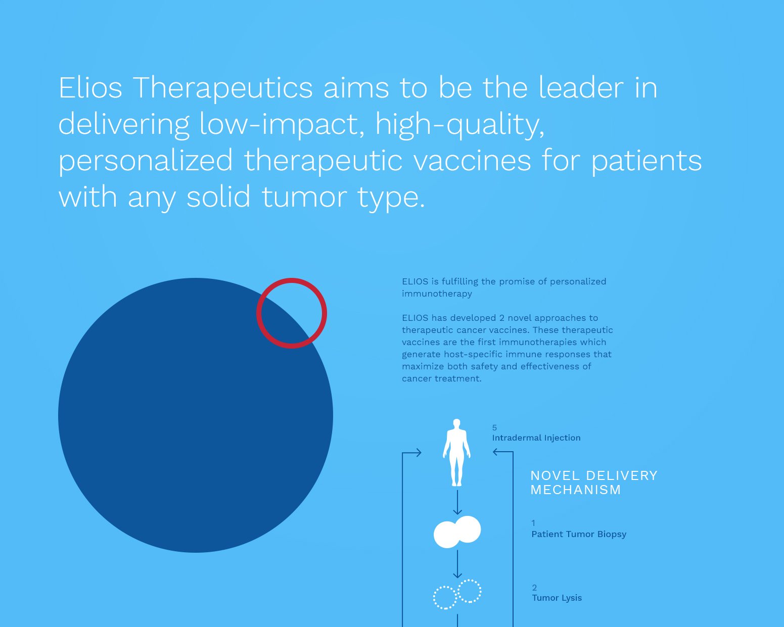 Working directly with the scientists and Elios Therapeutics’ PR firm, I designed and developed a website that provides an informational overview of the process for investors and potential patients. The visualizations and diagrams are simplified but scientifically-accurate representations of the biological processes.